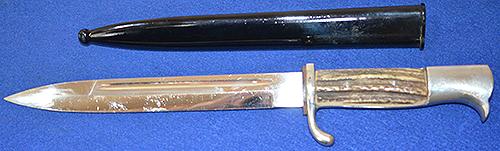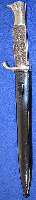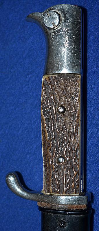 THIRD REICH SHORT MODEL NCO PARADE BAYONET WITH DELUX STAG HORN GRIP BY HOLLER.