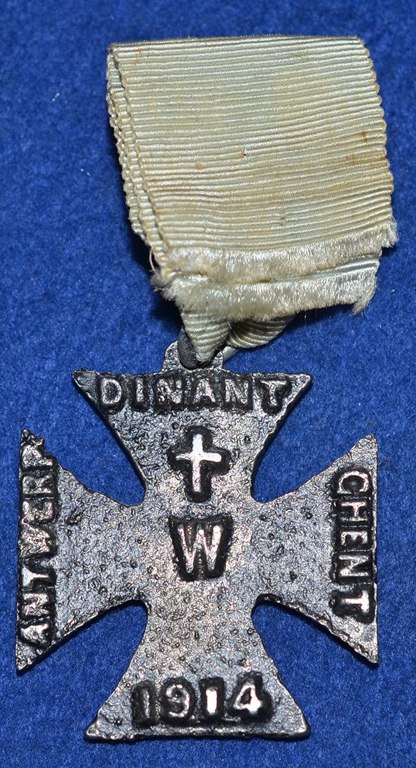German style cross produced in iron and featuring Allied towns where the Germans in WW1 are supposed have committed war crimes. Produced by the British in WW1 as propaganda. Complete with ribbon. Exc++