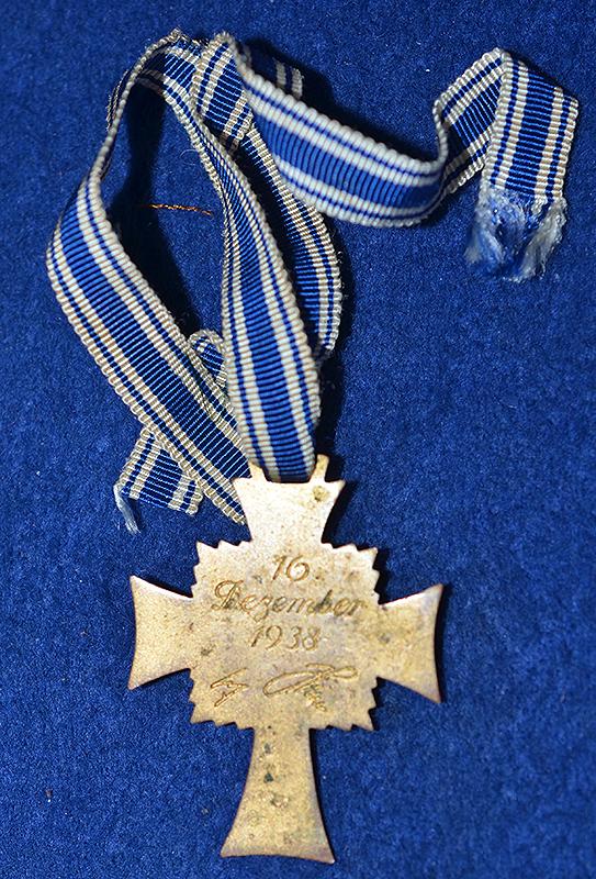 The enamel is in perfect condition and it still retains most of its gilt finish. The reverse side has the Adolf Hitler inscription and date. Complete with ribbon. Exc++