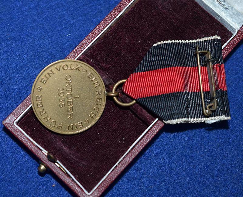 GERMAN 1ST OF OCTOBER MEDAL FOR THE ANNEXATION OF CZECHOSLOVAKIA COMPLETE WITH ISSUE BOX.