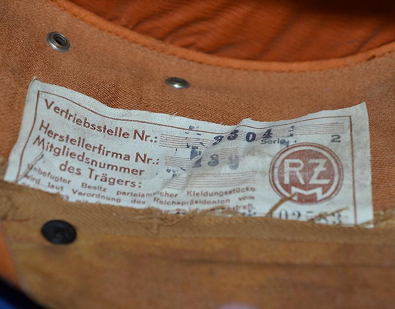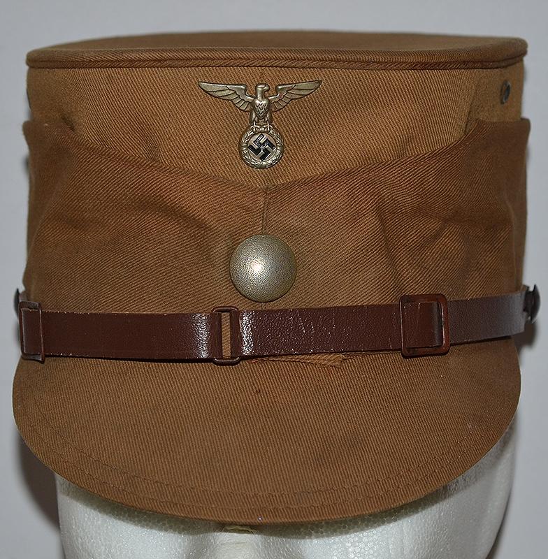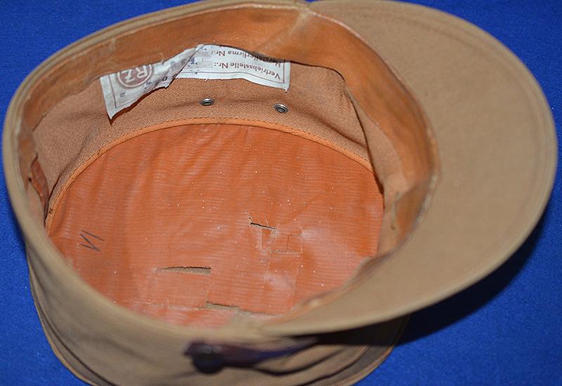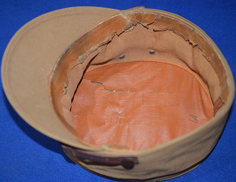 This is a really nice early third Reich example produced in brown cotton before the introduction of the coloured district bands. The Kepi is fitted with early style short wing eagle, silver button and leather chin strap which is held in place by two brown buttons there are also two air grommets to each side. The interior features a brown oil cloth lining, the lining has several age cracks but no missing material, it is fitted with a leather sweat band which shows wear, under the sweat band there is an early style RZM tag. The kepi almost certainly dates to early 1933, by late 1933 the SA started to introduce the coloured bands on Kepis. No moth or other damage. Exc++