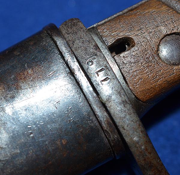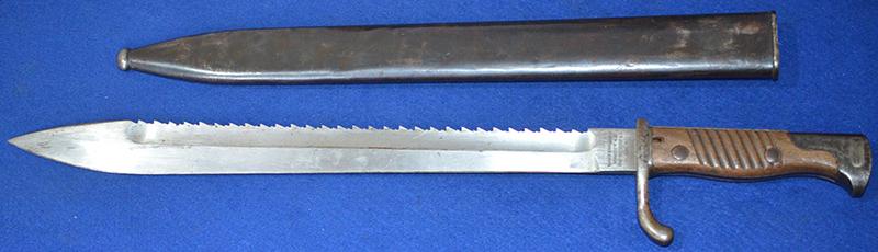 WW1 MOUSER M98/05 MODEL SAWBACK BAYONET WITH ISSUE STAMP.