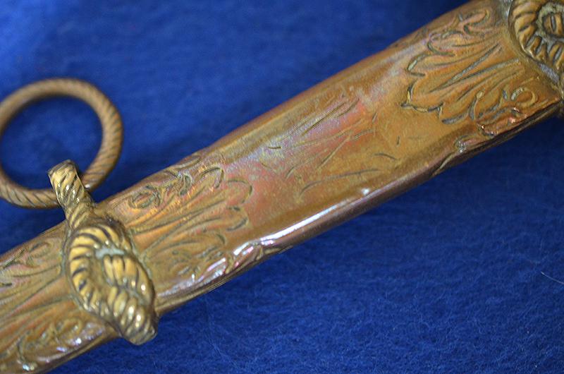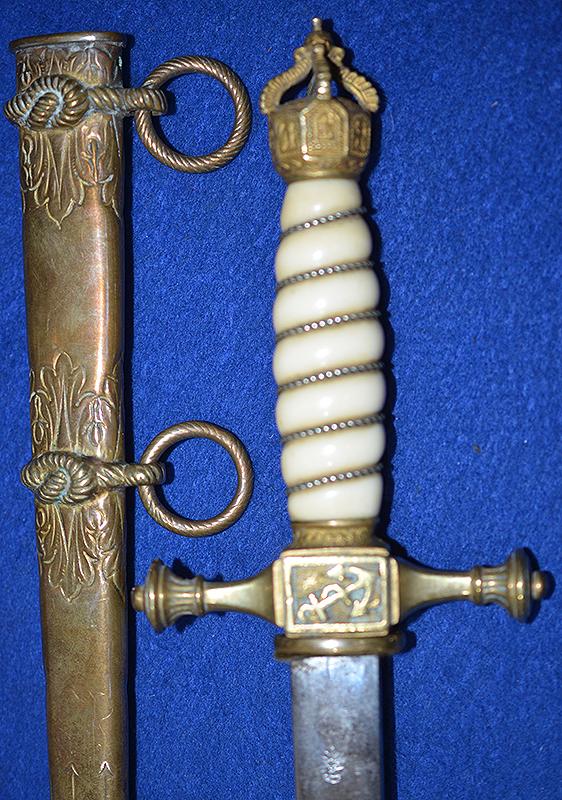 IMPERIAL GERMAN NAVAL OFFICERS DAGGER WITH UNUSUAL SCABBARD WHICH IS PERSONALISED TO THE ORIGINAL OWNER.