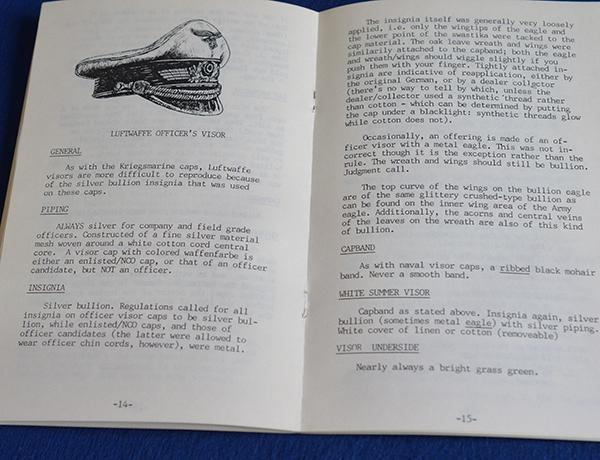 Pocket Guide To the Identification of Reproduction and Altered Original Third Reich Headgear by Gary Wilkins. Long out of print book published in 1986 and containing over 30 pages. Book explains what to look for with reproduction or altered German hats. Near mint.