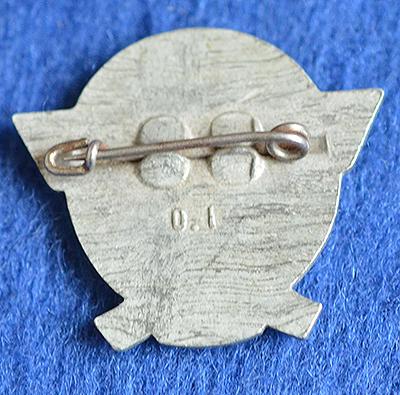 Silver metal police eagle with 1942 dated ribbon below. The reverse side features safety pin type hook and it is marked O I . Near mint .