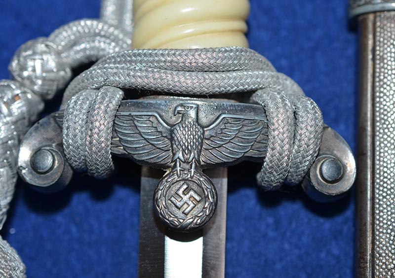 THIRD REICH ARMY OFFICERS DAGGER BY HOLLER COMPLETE WITH STRAPS AND KNOT.