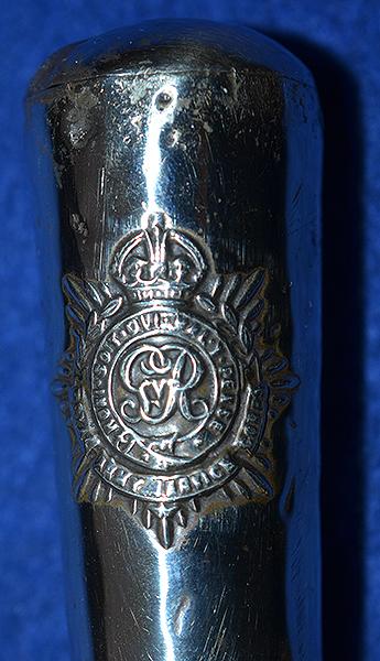 A very nice Edwardian army officers sword stick with malacca wooden cane with silver top and featuring the badge of the, Army Service Corps. Pulling the handle away from the shaft reveals a very nice double edged long steel blade that is double etched with masonic symbols. The owner almost certainly retired from the army and became a Mason. Exc++