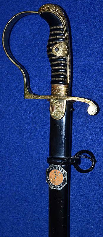 MINT CONDITION ARMY OFFICERS SWORD IN FULL GILT BY ALCOSO COMPLETE WITH ALCOSO ISSUE TAG.