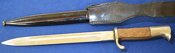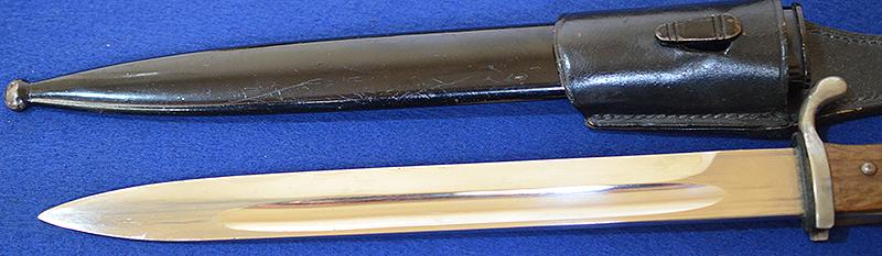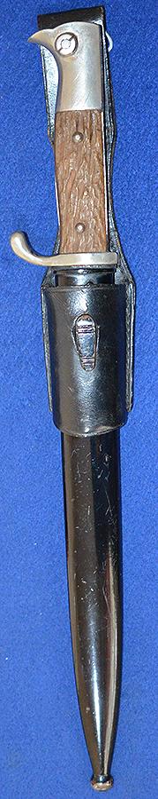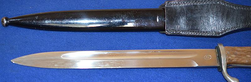 THIRD REICH LONG MODEL PARADE BAYONET WITH STAG HORN GRIP BY KREBS COMPLETE WITH FROG.