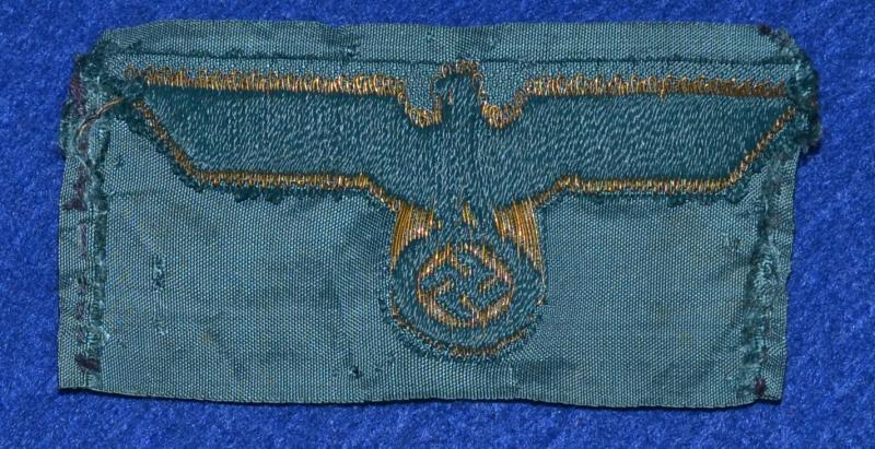 Gold machine woven eagle on green backing. Mint un-issued. Mint.