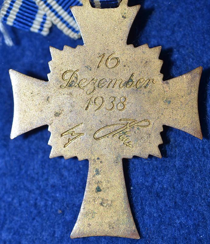 The enamel is in perfect condition and it still retains most of its gilt finish. The reverse side has the Adolf Hitler inscription and date. Complete with ribbon. Exc++