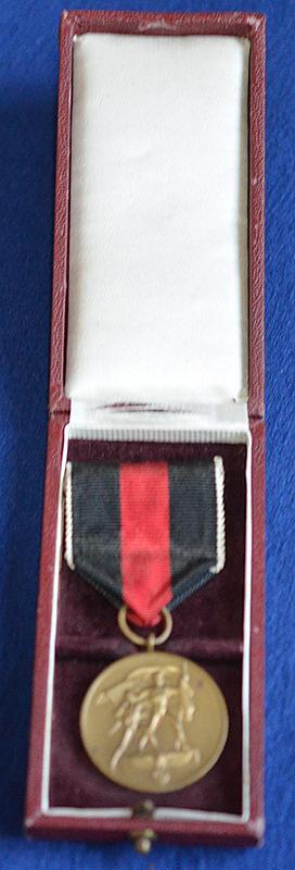 GERMAN 1ST OF OCTOBER MEDAL FOR THE ANNEXATION OF CZECHOSLOVAKIA COMPLETE WITH ISSUE BOX.