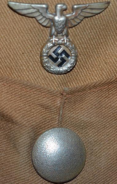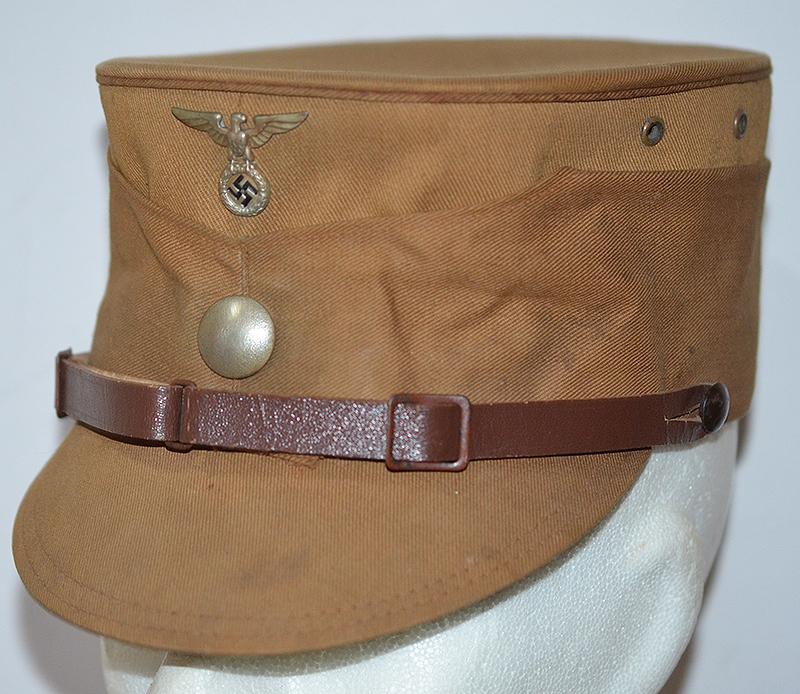 This is a really nice early third Reich example produced in brown cotton before the introduction of the coloured district bands. The Kepi is fitted with early style short wing eagle, silver button and leather chin strap which is held in place by two brown buttons there are also two air grommets to each side. The interior features a brown oil cloth lining, the lining has several age cracks but no missing material, it is fitted with a leather sweat band which shows wear, under the sweat band there is an early style RZM tag. The kepi almost certainly dates to early 1933, by late 1933 the SA started to introduce the coloured bands on Kepis. No moth or other damage. Exc++