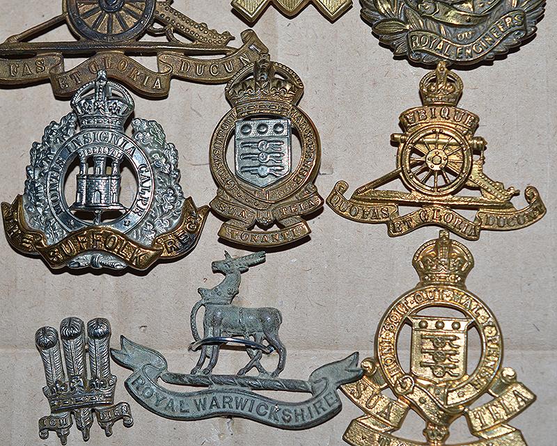 Various British regiments. The Warwickshire Regiment badge is missing the loops to the reverse side but all the others are perfect. Price is for the complete collection. Exc++