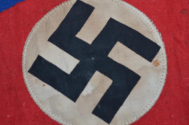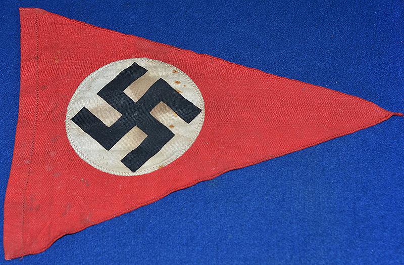 Small swastika double sided pennant. Red cotton pennant with separately applied white circle with machine woven swastika. Exc++