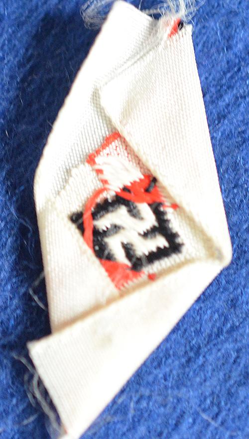 Small machine woven HJ swastika diamond. Probably for a forage cap. Mint.