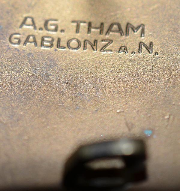 Impressive looking badge, the enamel is in perfect condition. The reverse side is fitted with pin and hook and it is maker marked, A.G.THAM GABLONZ A N. Near mint.