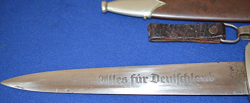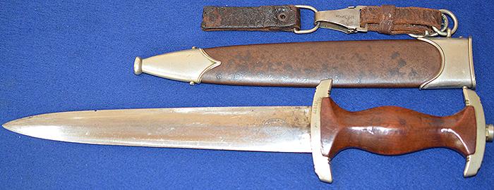 SA DAGGER 1933 MODEL BY EICKHORN WITH UNIT ISSUE NUMBER AND COMPLETE WITH HANGER AND BELT LOOP.